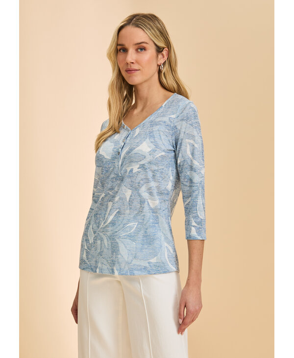 Chandail imprimé tons de bleu.