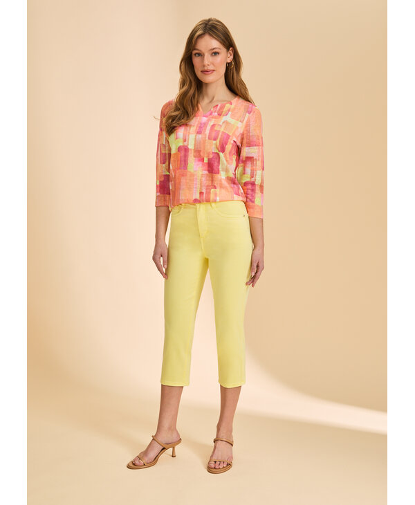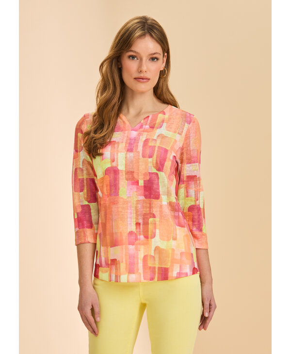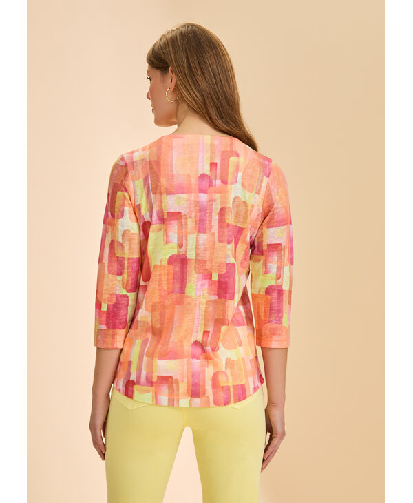 Chandail imprimé tons de rose orangé.
