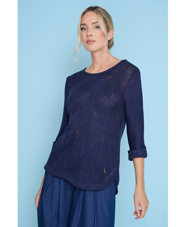 Chandail de tricot lagoon ou denim.