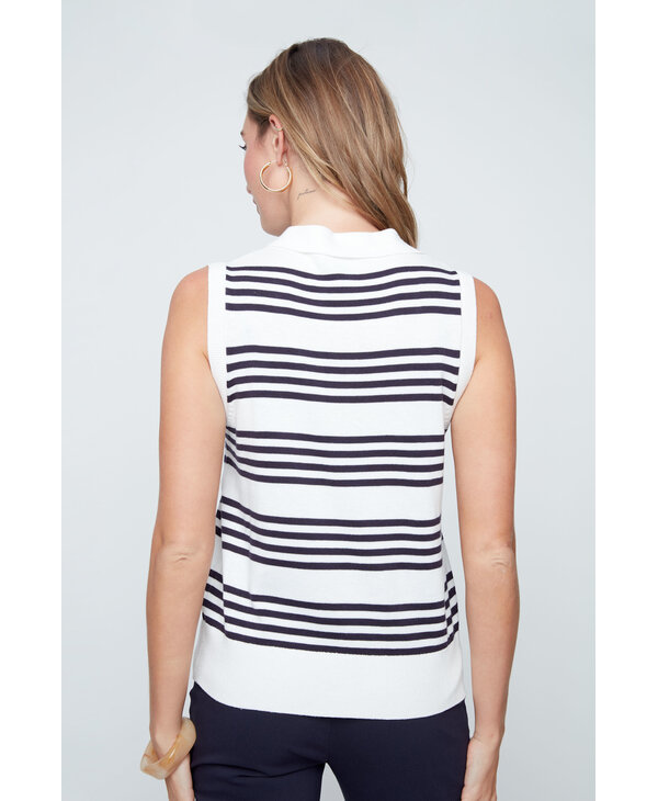 Chandail à rayures marine et blanc.
