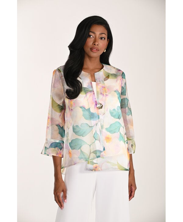 Veste imprimée multi tons pastel.