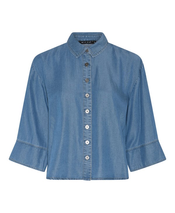 Haut bleu denim.