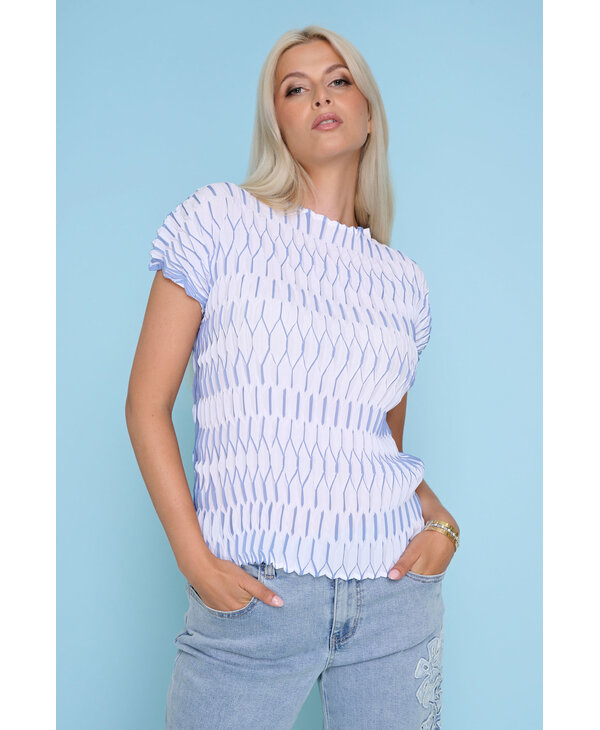 Haut blanc et bleu.
