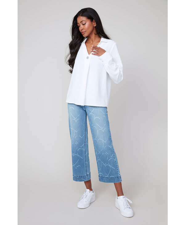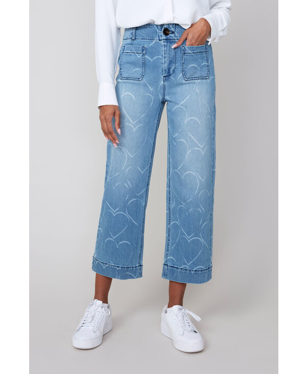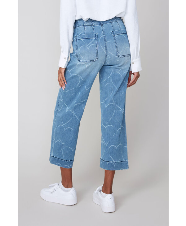 Jeans bleu avec coeurs.
