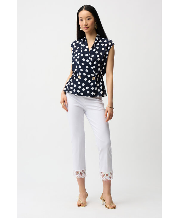 Pantalon marine, blanc sur commande.