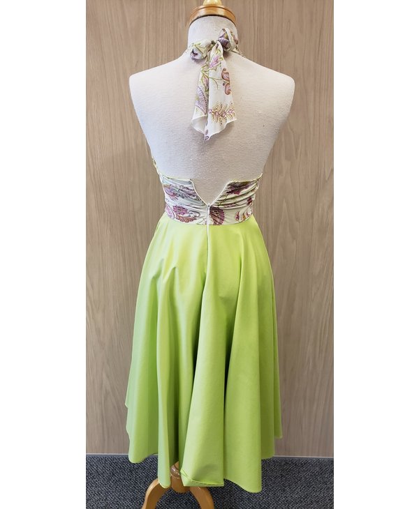 Robe longuette, style vintage, année 60. Imprimé paisley et lime.