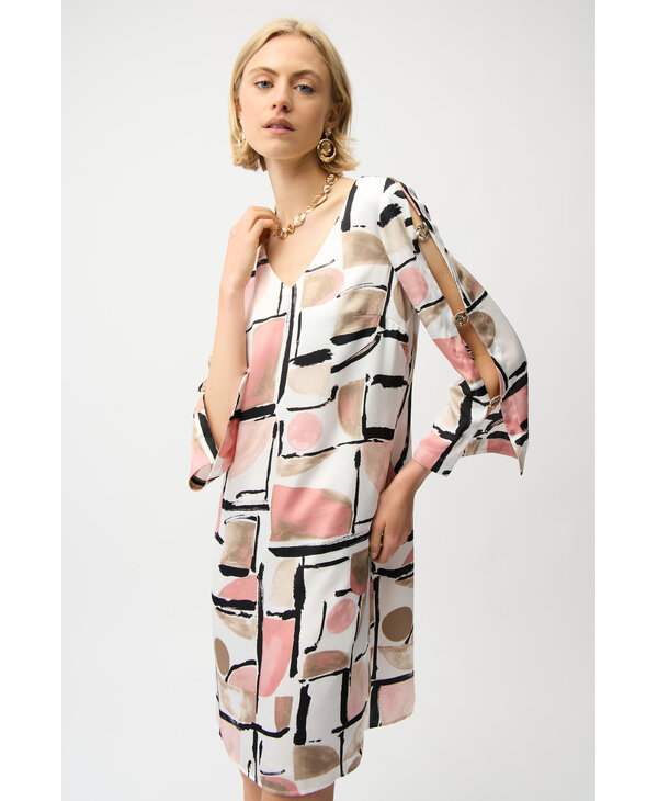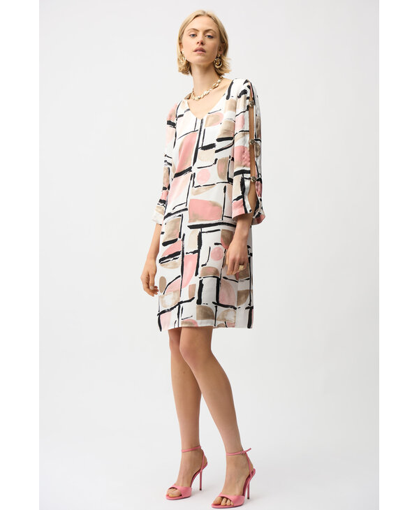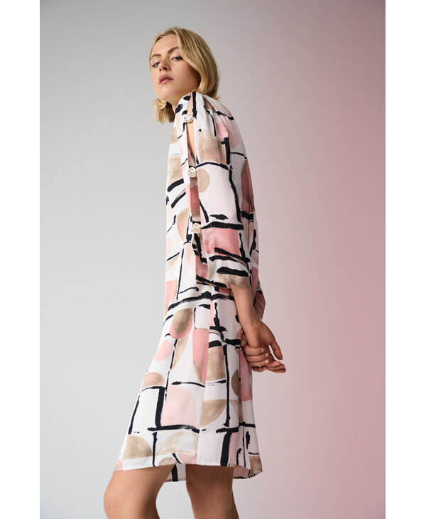 Robe imprimée rose blush, beige, blanc, noir.