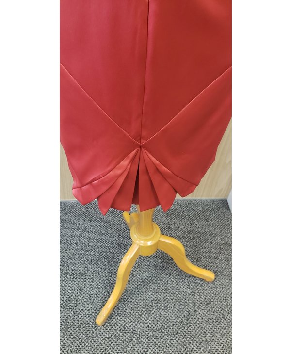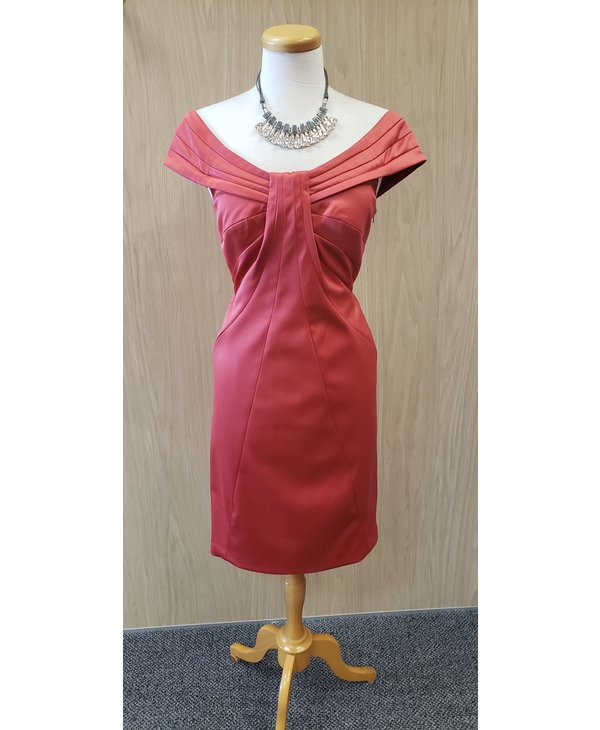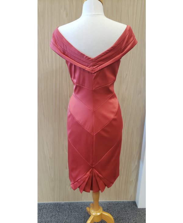 Robe de satin corail foncé.