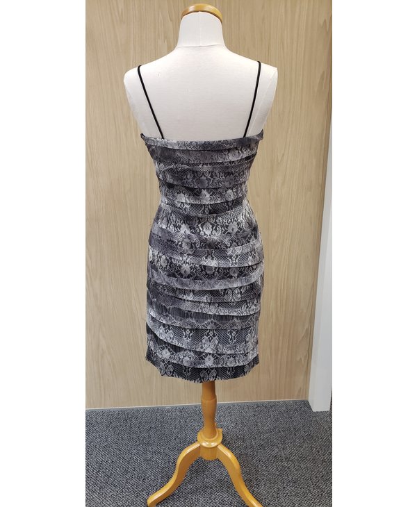 Robe de dentelle à étages, tons de gris.
