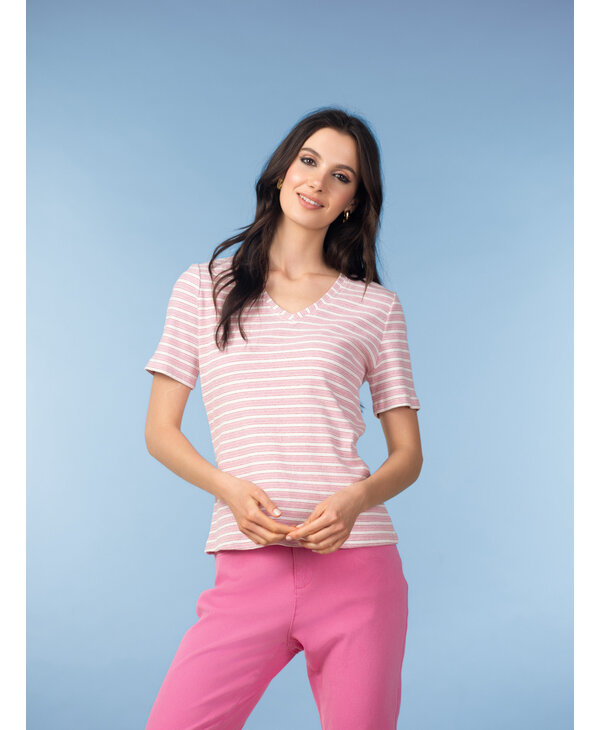 T-shirt disponible en rayures bleues, rose sur commande.