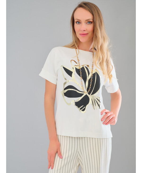 T-Shirt ivoire et noir doré.