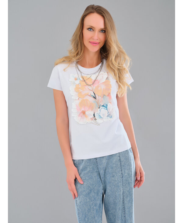 T-Shirt blanc imprimé tons de beige.