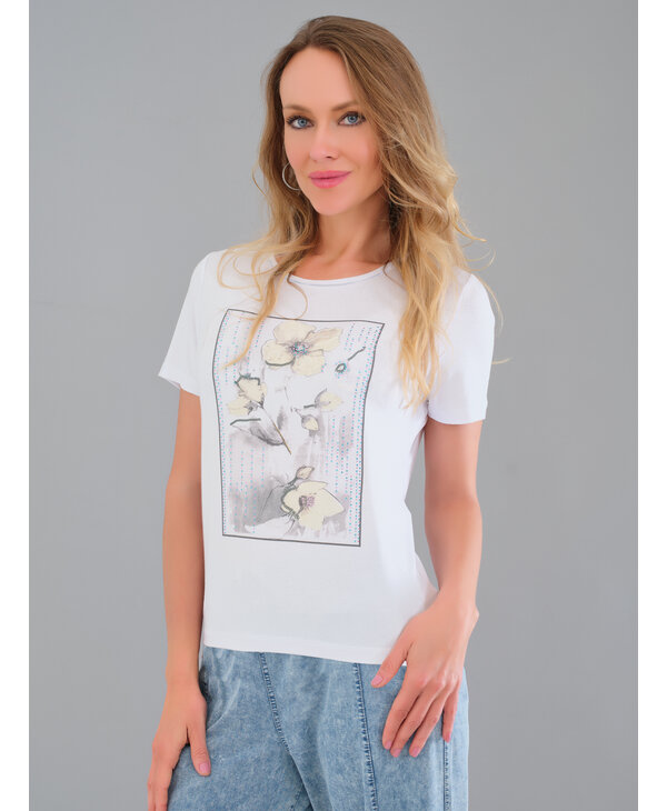 T-shirt blanc, imprimé floral