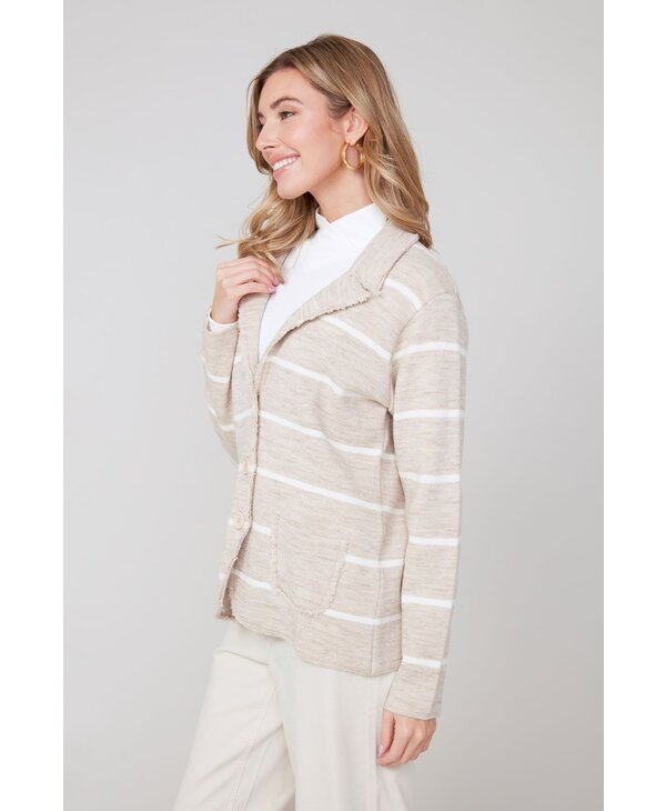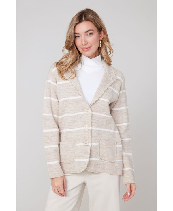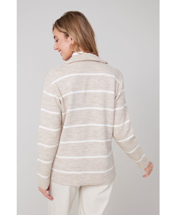 Veston en tricot beige et ivoire.